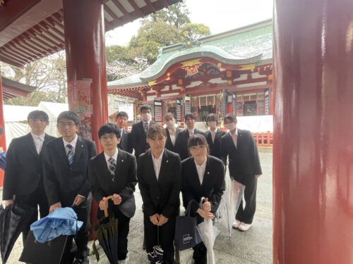また、入社後は、恒例の浅間神社にて祈祷を行いました。新入社員の今後の成長と安全、そして会社の発展を祈願しました。